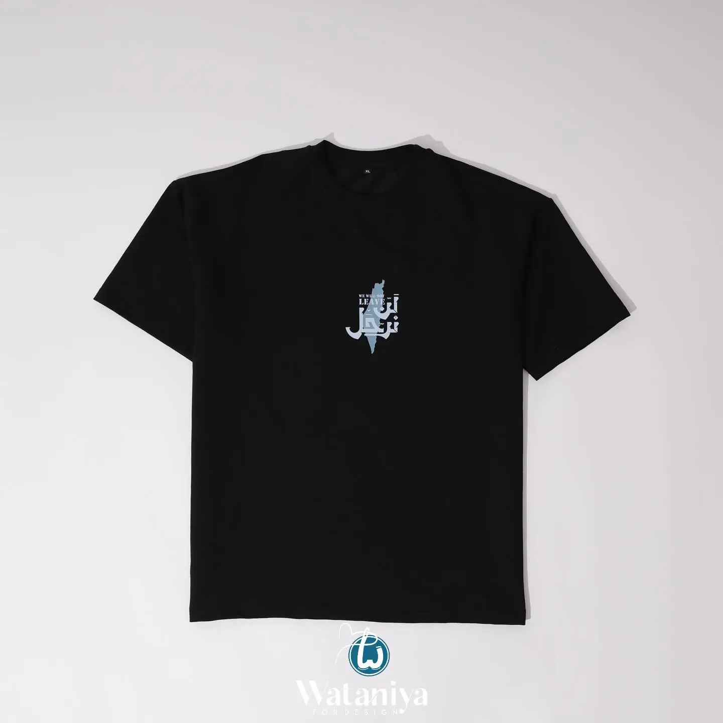 تيشيرت أسود واسع نص كم مطبوع، مناسب لكل يوم